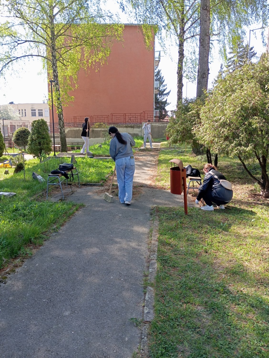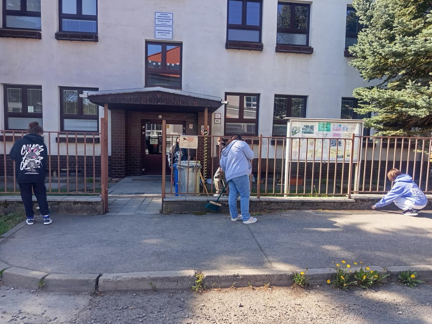 Spoločne sme upravovali okolie školy na Jesenského ulici, čistili priestory v areáli aj v jeho blízkosti, zbierali odpadky, zametali chodníky a starali sa o zeleň. Žiaci sa pustili aj do sadenia kvetov, úpravy skaliek a záhonov či okopávania ovocných kríkov na školskom dvore. Chlapci vyčistili aj okolie areálu školských dielní.