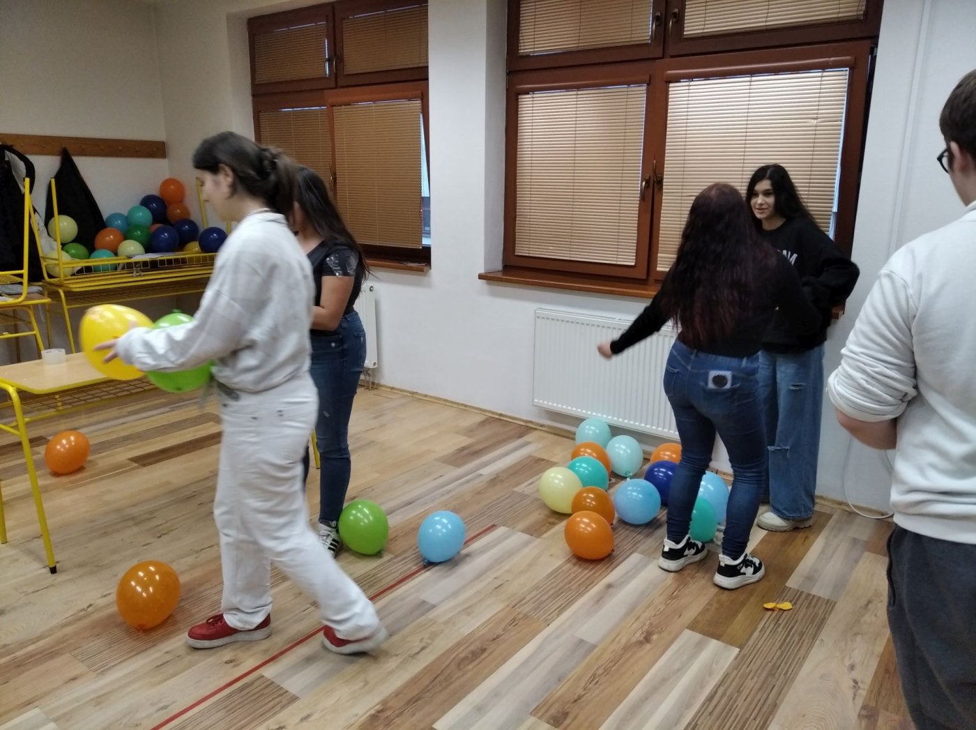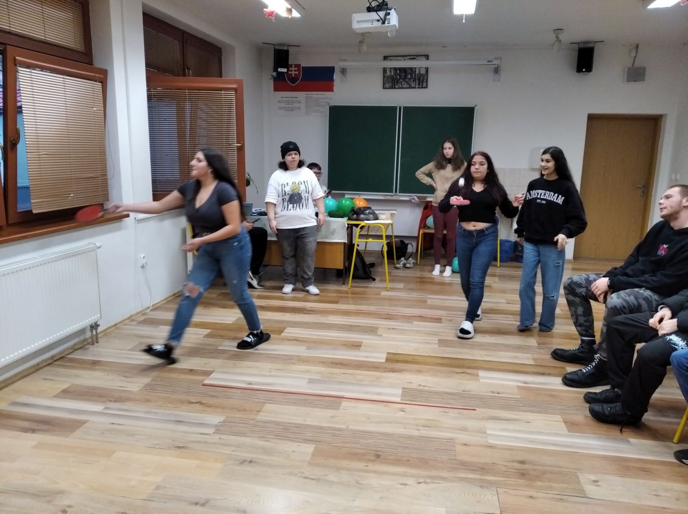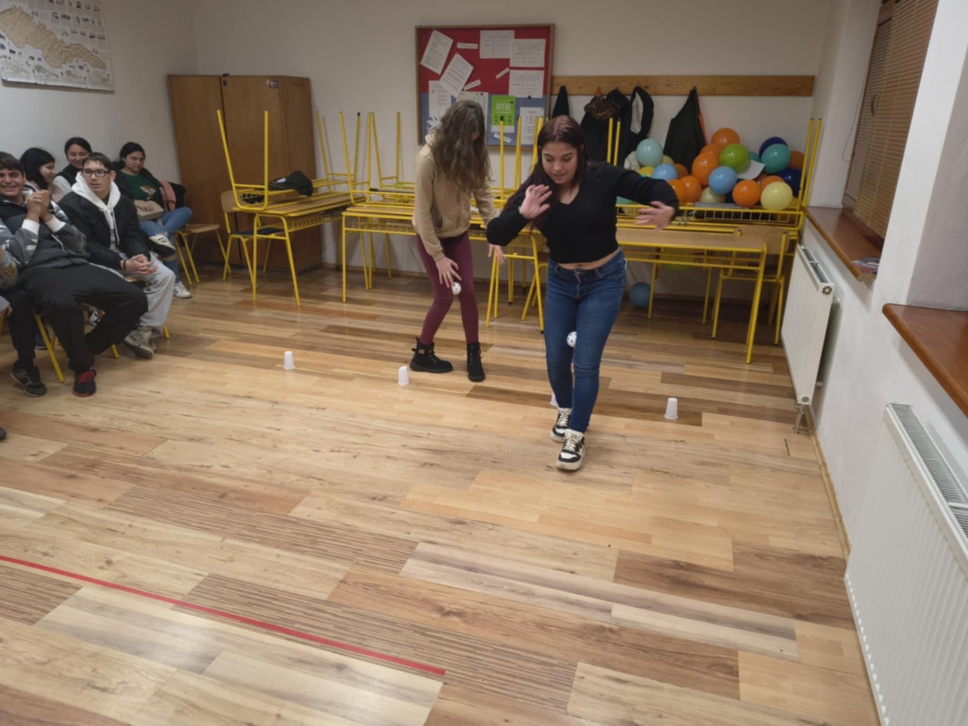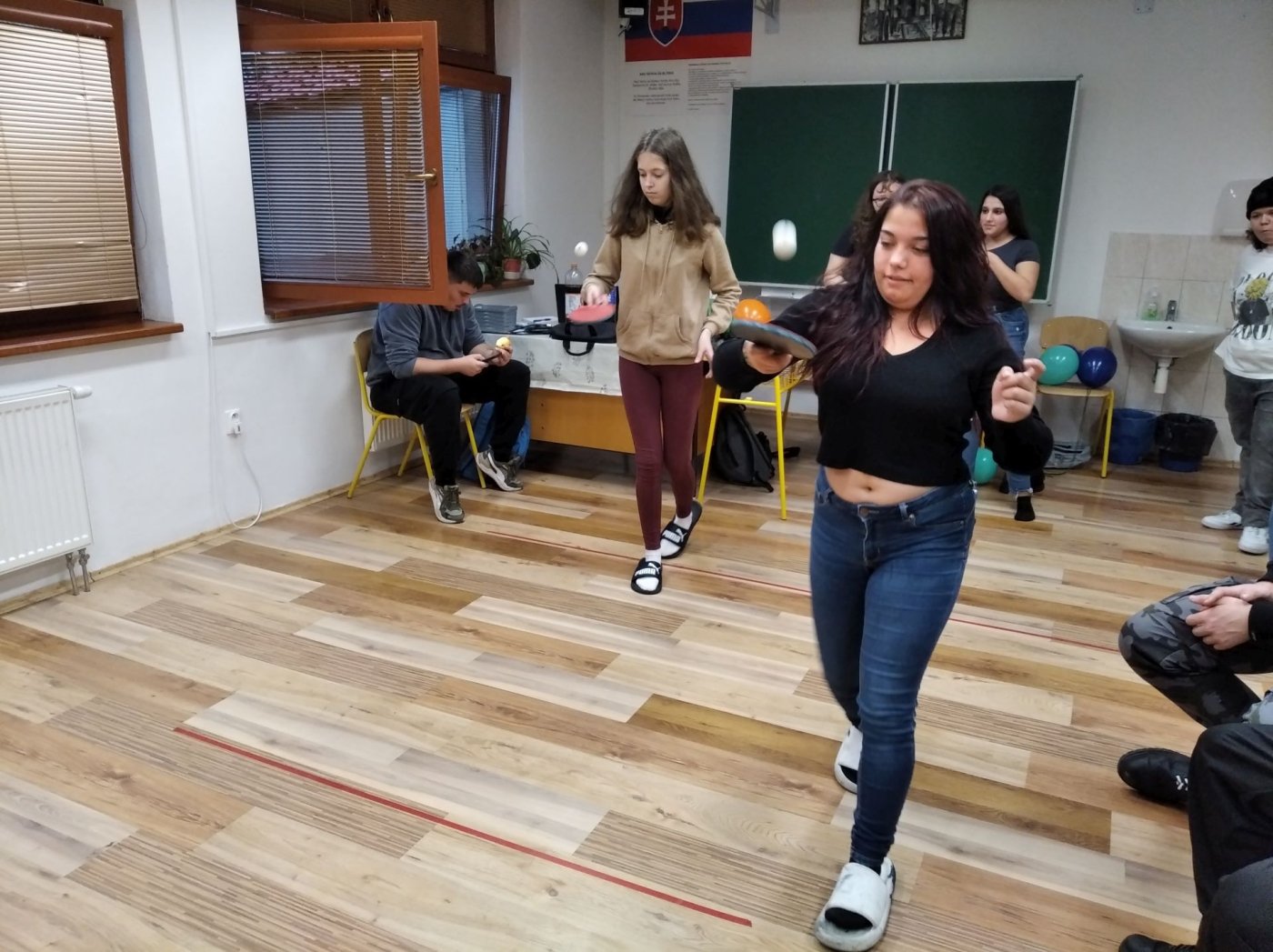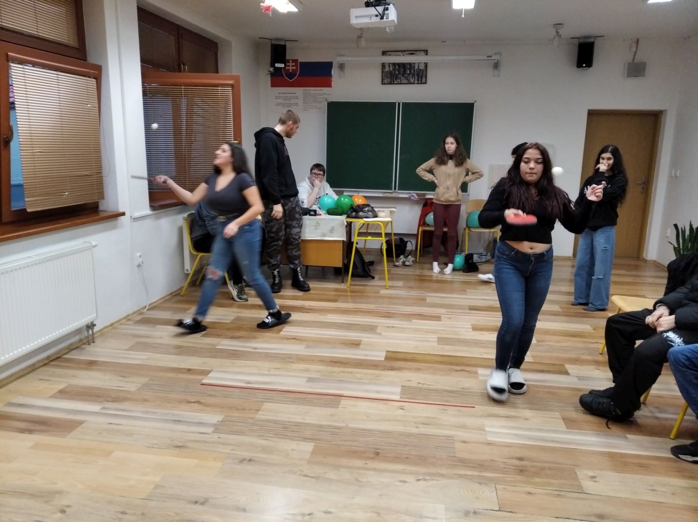 rozpoznávali známe melódie, a pohybovú výzvu prenášania florbalovej loptičky medzi kolenami, ktorá preverila