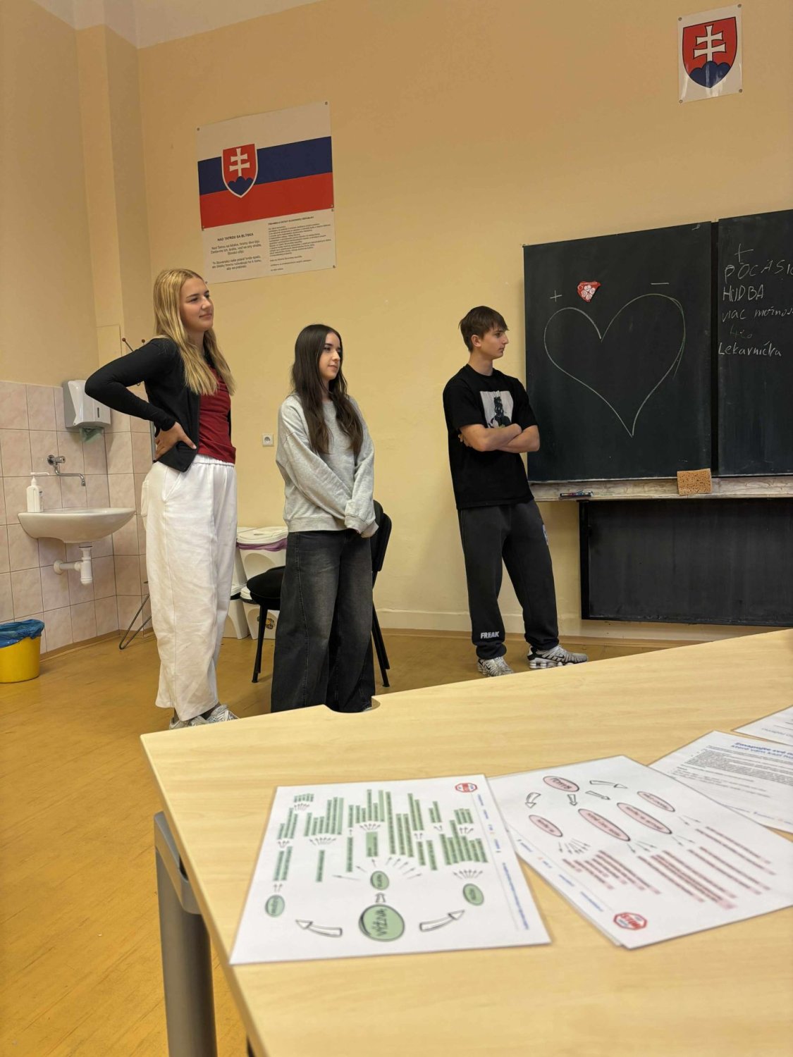 Už od rána sa chodbami niesla červená farba, keďže sme sa zapojili do výzvy „Obleč sa do červenej“. Symbolizovala energiu, radosť a zdravé srdce, na ktoré sa počas dňa kládol dôraz. Zaujímavým a poučným bodom programu bola prednáška pani Mgr. Gondášovej z Regionálneho úradu verejného zdravotníctva vo Zvolene, ktorá nám vysvetlila, ako predchádzať srdcovocievnym ochoreniam. Dozvedeli sme sa, že zdravý životný štýl nie je nič zložité, stačí viac pohybu, vyvážená strava a dostatok odpočinku. Veľkým zážitkom bolo aj vytvorenie živého srdca. Nebola to len pekná symbolika, ale aj malá pohybová aktivita všetci sme sa do tvaru srdca zoradili chôdzou. Chceli sme tak poukázať na to, že práve pohyb je dôležitou súčasťou prevencie a k zdraviu patrí rovnako ako zdravá strava.Počas dňa sme si mohli vyskúšať aj meranie na prístroji InBody či kontrolu krvného tlaku.