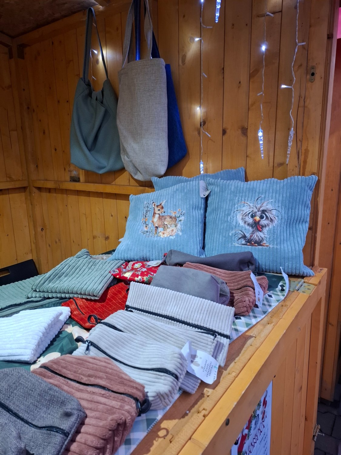 produkty študentskej firmy Flamma, tepľučké, ručne robené šále a všeličo iné,